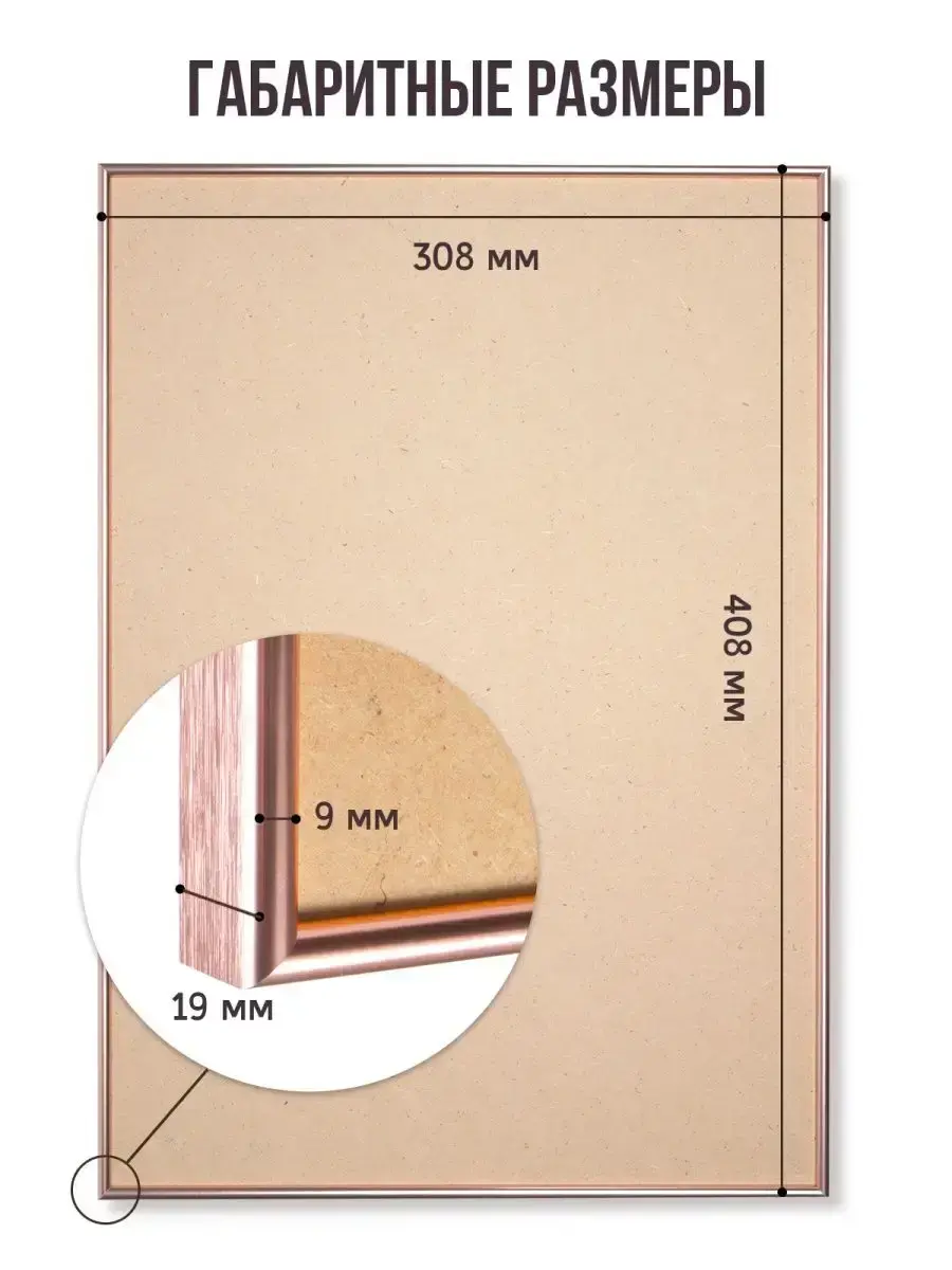 Брашированная алюминиевая рамка 30х40 см с быстрой сменой изображения. Достоинства фоторамки 30х40 см: крепкий стильный металлический каркас; прозрачная вставка из ПЭТ; небольшой вес. Основным преимуществом перед другими металлическими фоторамками 30 на 40 (типа Нельсон) является суперудобная и супербыстрая смена вложений: нужно просто сдвинуть прижимные пружины. В рамки 30 на 40 см можно вставить: постеры; фотографии; пазлы, алмазную мозаику, вышивку и т. д. Рамку для фото 30х40 см можно вешать и вертикально, и горизонтально. Металлические рамки 30х40 см изготовлены из анодированного алюминиевого профиля, укомплектованы жестким задником из оргалита 3 мм, защитным прозрачным пластиком ПЭТ 0,5 мм, металлическими пружинами/подвесами для фиксации вложения и размещения рамки на стене. Внимание! В рамке 30х40 см для постеров мы используем прозрачную вставку из ПЭТ толщиной 0,5 мм, а не стекло. Фоторамка 30х40 получается легкой и безопасной - её невозможно разбить даже намеренно. При этом эстетические свойства рамки 30 на 40 см не теряются: ПЭТ не искажает изображение и обеспечивает 100%-ю прозрачность. Внимание! Перед первым использованием рамки для картины 30х40 с пластиковой вставки необходимо снять защитную пленку с двух сторон! Внимание! Наши рамки 30 на 40 не предназначены для использования вне помещений.