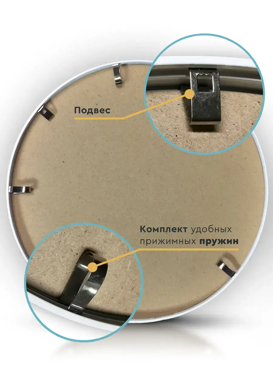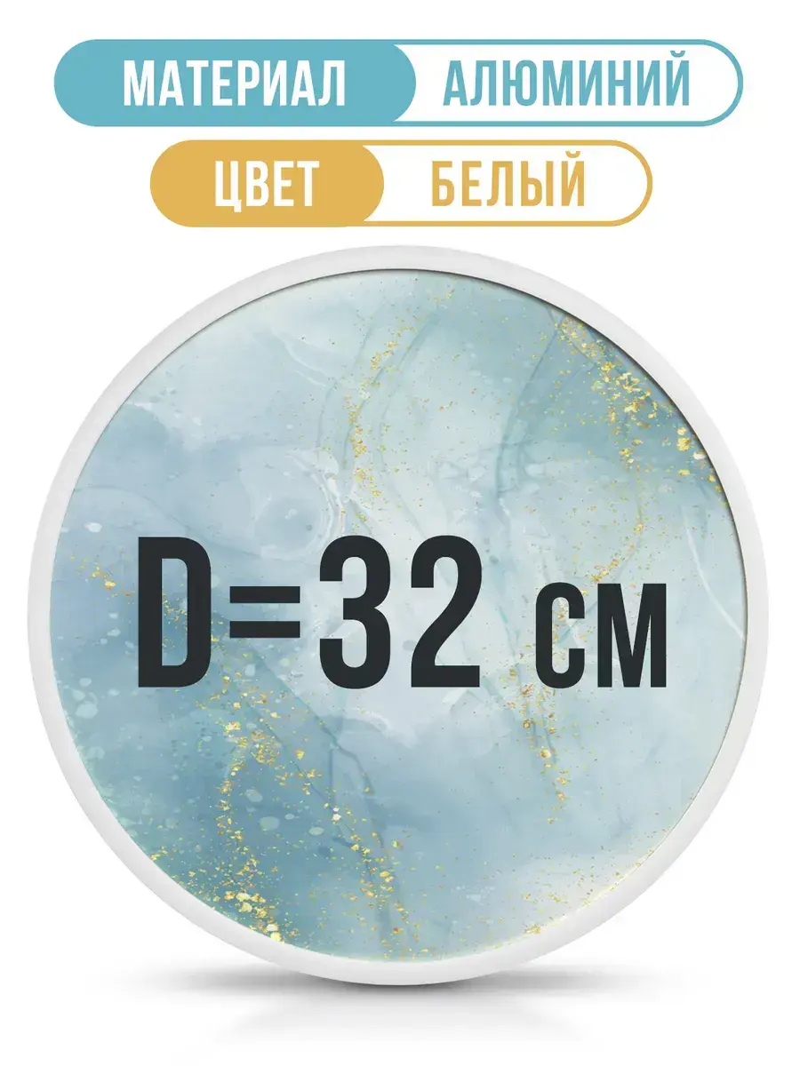 Круглая алюминиевая фоторамка 32 см. Габаритные размеры круглой металлической фоторамки - 328 мм. Диаметр видимой части - 310 мм. В круглую алюминиевую рамку 320 мм можно вставить постер, фото, алмазную мозаику, пазл, вышивку, зеркало, а также любую вставку, толщина которой не превышает 10 мм. Круглая металлическая рамка 32 см выполнена из легкого алюминия с красивой брашированной текстурой. В рамку для фото 32 см очень просто вставить изображение. Прижимные пружины вытаскиваются и вставляются без малейших усилий, но держат плотно и надежно. Подвес фоторамки также вставляется очень легко и свободно перемещается на любую точку окружности. Вместо стекла мы используем прозрачный пластик ПЭТ. Фоторамка 32 см получается легкой и безопасной - её невозможно разбить даже намеренно. При этом эстетические свойства круглой металлической рамки для вышивки не теряются: ПЭТ не искажает изображение и обеспечивает абсолютную прозрачность. Не забудьте снять защитную пленку с прозрачной вставки с ДВУХ сторон! Произведено в России.