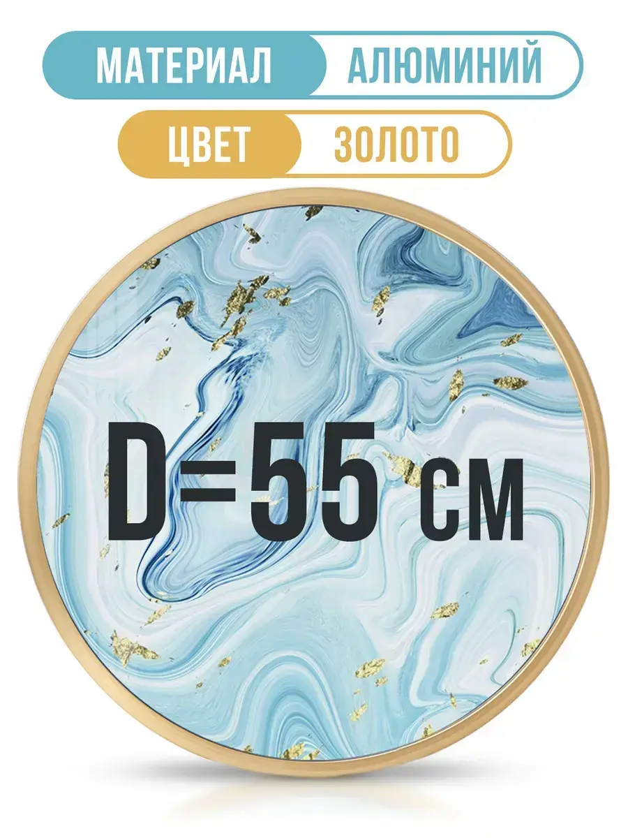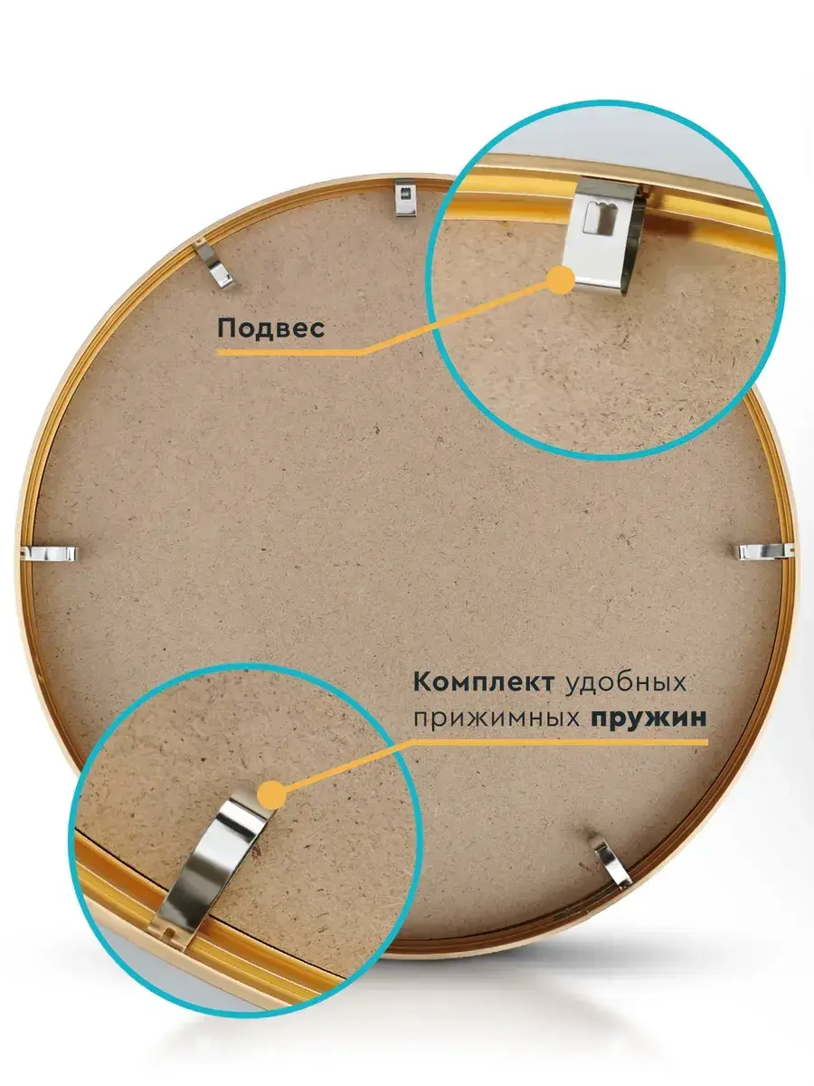 Круглая алюминиевая фоторамка 55 см. Габаритные размеры круглой металлической фоторамки - 558 мм. Диаметр видимой части - 540 мм. В круглую алюминиевую рамку 550 мм можно вставить постер, фото, алмазную мозаику, пазл, вышивку, зеркало, а также любую вставку, толщина которой не превышает 10 мм. Круглая металлическая рамка 55 см выполнена из легкого алюминия с красивой брашированной текстурой. В рамку для фото 55 см очень просто вставить изображение. Прижимные пружины вытаскиваются и вставляются без малейших усилий, но держат плотно и надежно. Подвес фоторамки также вставляется очень легко и свободно перемещается на любую точку окружности. Вместо стекла мы используем прозрачный пластик ПЭТ. Фоторамка 55 см получается легкой и безопасной - её невозможно разбить даже намеренно. При этом эстетические свойства круглой металлической рамки не теряются: ПЭТ не искажает изображение и обеспечивает абсолютную прозрачность. Не забудьте снять защитную пленку с прозрачной вставки с ДВУХ сторон! Произведено в России.