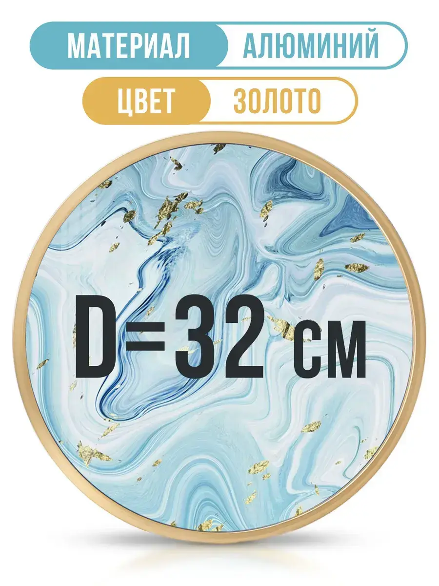 Круглая алюминиевая фоторамка 32 см. Габаритные размеры круглой металлической фоторамки - 328 мм. Диаметр видимой части - 310 мм. В круглую алюминиевую рамку 320 мм можно вставить постер, фото, алмазную мозаику, пазл, вышивку, зеркало, а также любую вставку, толщина которой не превышает 10 мм. Круглая металлическая рамка 32 см выполнена из легкого алюминия с красивой брашированной текстурой. В рамку для фото 32 см очень просто вставить изображение. Прижимные пружины вытаскиваются и вставляются без малейших усилий, но держат плотно и надежно. Подвес фоторамки также вставляется очень легко и свободно перемещается на любую точку окружности. Вместо стекла мы используем прозрачный пластик ПЭТ. Фоторамка 32 см получается легкой и безопасной - её невозможно разбить даже намеренно. При этом эстетические свойства круглой металлической рамки для вышивки не теряются: ПЭТ не искажает изображение и обеспечивает абсолютную прозрачность. Не забудьте снять защитную пленку с прозрачной вставки с ДВУХ сторон! Произведено в России.