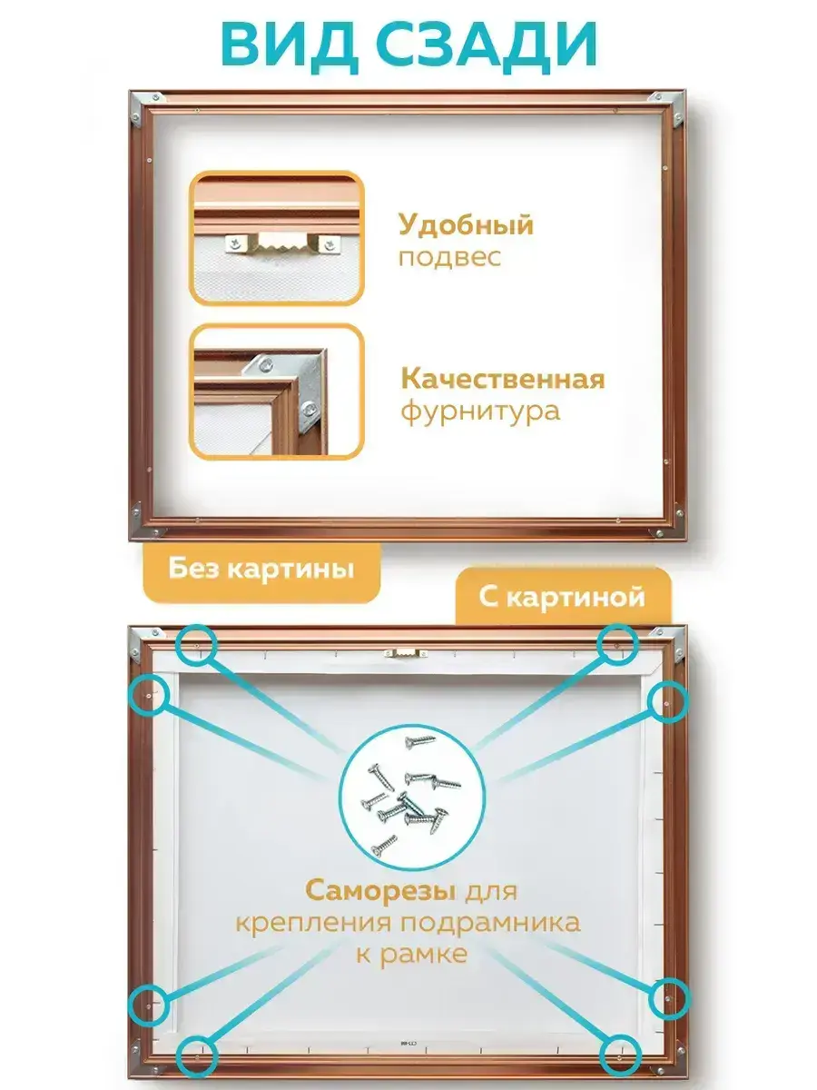 Металлическая багетная рама 80х120 см предназначена для картин на подрамнике. Размер 80х120 см — это размер подходящей вставки, а габариты самой рамки больше - 82х122 см. Подробный слайд со всеми размерами можно найти в фотографиях товара. Рама 80х120 см подойдет для картины на подрамнике, алмазной мозаики на подрамнике, картины по номерам на подрамнике. Глубина рамки 80х120 см - 20 мм. Если толщина вашей вставки - 20 мм, то вставка будет располагаться вровень с рамкой. Если толщина вашей вставки больше 20 мм - вставка будет выступать над рамкой. Если толщина вставки меньше 20 мм, то рамка будет выступать над вставкой. Благодаря уникальному конструктиву алюминиевой рамки 80х120 см, она красиво обрамляет холст, не утяжеляя его. Между подрамником и рамкой остается свободное пространство, что создает эффект «плавающей» картины. Картина на подрамнике крепится к металлической рамке 80х120 см саморезами, которые идут в комплекте с рамкой. Также в комплектацию рамки 80х120 см входит удобный подвес, двойные крепежные углы и отвертка. Подробный слайд с комплектацией можно найти в фотографиях карточки товара. Внимание! Рамка 80 на 120 см поставляется в прочном картонном тубусе в разобранном виде. Сборка рамки 80х120 см очень простая и не потребует много усилий. Благодаря своему стильному и минималистичному дизайну эта рама будет идеально вписываться в любой интерьер, будь то классический, современный или скандинавский стиль. Металлическая багетная рама 80х120 см от Designeroom не только украсит ваш дом, но и станет акцентом, подчеркивающим ваш вкус и стиль.