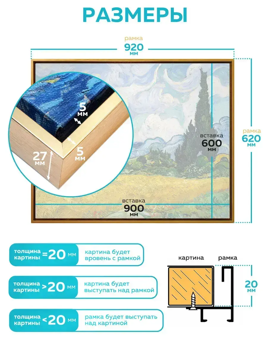 Металлическая багетная рама 60х90 см предназначена для картин на подрамнике. Размер 60х90 см — это размер подходящей вставки, а габариты самой рамки больше - 62х92 см. Подробный слайд со всеми размерами можно найти в фотографиях товара. Рама 60х90 см подойдет для картины на подрамнике, алмазной мозаики на подрамнике, картины по номерам на подрамнике. Глубина рамки 60х90 см - 20 мм. Если толщина вашей вставки - 20 мм, то вставка будет располагаться вровень с рамкой. Если толщина вашей вставки больше 20 мм - вставка будет выступать над рамкой. Если толщина вставки меньше 20 мм, то рамка будет выступать над вставкой. Благодаря уникальному конструктиву алюминиевой рамки 60х90 см, она красиво обрамляет холст, не утяжеляя его. Между подрамником и рамкой остается свободное пространство, что создает эффект «плавающей» картины. Картина на подрамнике крепится к металлической рамке 60х90 см саморезами, которые идут в комплекте с рамкой. Также в комплектацию рамки 60х90 см входит удобный подвес, двойные крепежные углы и отвертка. Подробный слайд с комплектацией можно найти в фотографиях карточки товара. Внимание! Рамка 60 на 90 см поставляется в прочном картонном тубусе в разобранном виде. Сборка рамки 60х90 см очень простая и не потребует много усилий. Благодаря своему стильному и минималистичному дизайну эта рама будет идеально вписываться в любой интерьер, будь то классический, современный или скандинавский стиль. Металлическая багетная рама 60х90 см от Designeroom не только украсит ваш дом, но и станет акцентом, подчеркивающим ваш вкус и стиль.