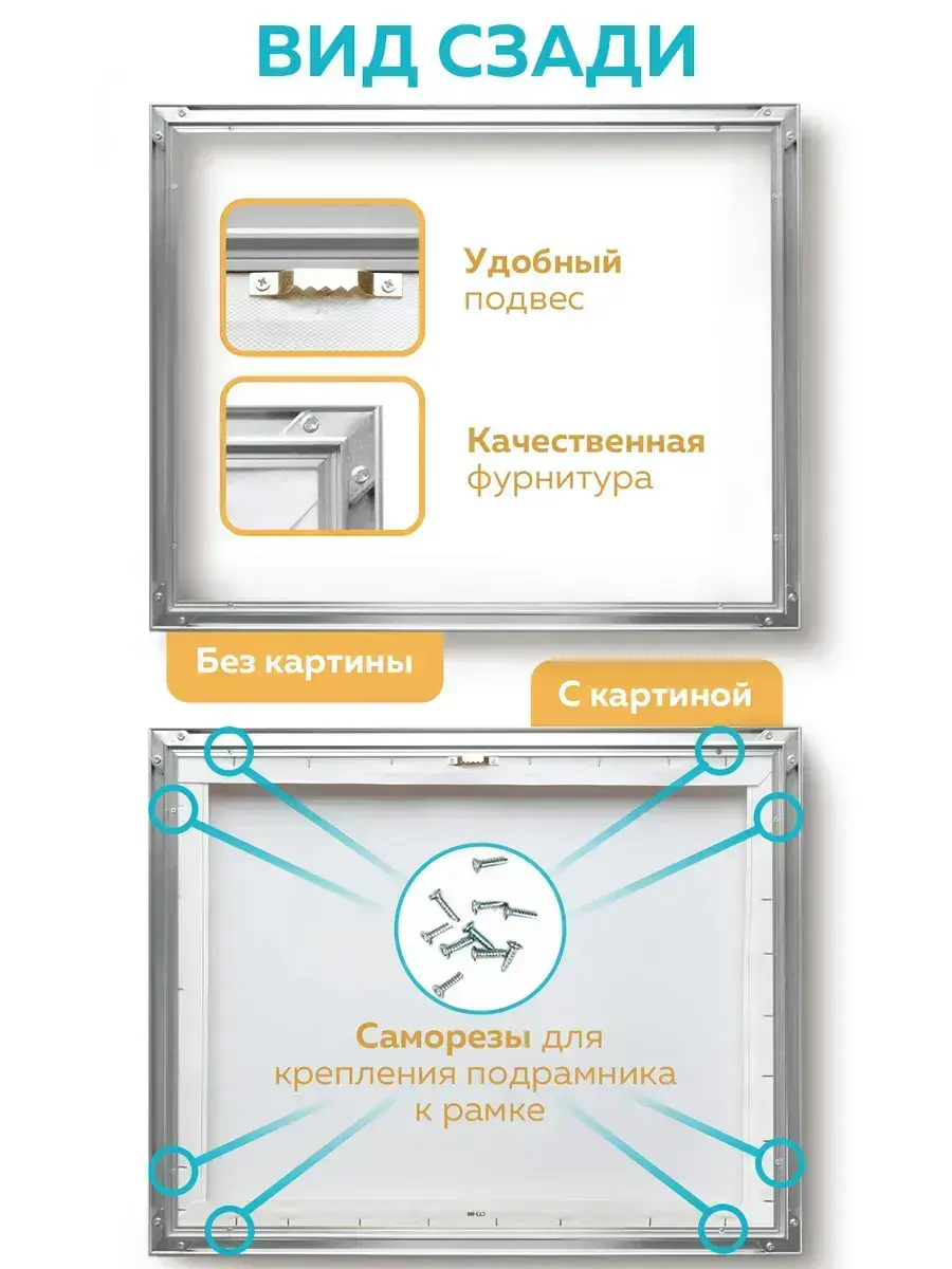 Металлическая багетная рама 80х120 см предназначена для картин на подрамнике. Размер 80х120 см — это размер подходящей вставки, а габариты самой рамки больше - 82х122 см. Подробный слайд со всеми размерами можно найти в фотографиях товара. Рама 80х120 см подойдет для картины на подрамнике, алмазной мозаики на подрамнике, картины по номерам на подрамнике. Глубина рамки 80х120 см - 20 мм. Если толщина вашей вставки - 20 мм, то вставка будет располагаться вровень с рамкой. Если толщина вашей вставки больше 20 мм - вставка будет выступать над рамкой. Если толщина вставки меньше 20 мм, то рамка будет выступать над вставкой. Благодаря уникальному конструктиву алюминиевой рамки 80х120 см, она красиво обрамляет холст, не утяжеляя его. Между подрамником и рамкой остается свободное пространство, что создает эффект «плавающей» картины. Картина на подрамнике крепится к металлической рамке 80х120 см саморезами, которые идут в комплекте с рамкой. Также в комплектацию рамки 80х120 см входит удобный подвес, двойные крепежные углы и отвертка. Подробный слайд с комплектацией можно найти в фотографиях карточки товара. Внимание! Рамка 80 на 120 см поставляется в прочном картонном тубусе в разобранном виде. Сборка рамки 80х120 см очень простая и не потребует много усилий. Благодаря своему стильному и минималистичному дизайну эта рама будет идеально вписываться в любой интерьер, будь то классический, современный или скандинавский стиль. Металлическая багетная рама 80х120 см от Designeroom не только украсит ваш дом, но и станет акцентом, подчеркивающим ваш вкус и стиль.