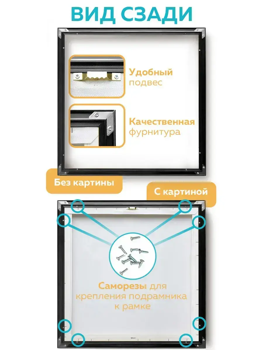 Металлическая багетная рама 50х50 см предназначена для картин на подрамнике. Размер 50х50 см — это размер подходящей вставки, а габариты самой рамки больше - 52х52 см. Подробный слайд со всеми размерами можно найти в фотографиях товара. Рама 50х50 см подойдет для картины на подрамнике, алмазной мозаики на подрамнике, картины по номерам на подрамнике. Глубина рамки 50х50 см - 20 мм. Если толщина вашей вставки - 20 мм, то вставка будет располагаться вровень с рамкой. Если толщина вашей вставки больше 20 мм - вставка будет выступать над рамкой. Если толщина вставки меньше 20 мм, то рамка будет выступать над вставкой. Благодаря уникальному конструктиву алюминиевой рамки 50х50 см, она красиво обрамляет холст, не утяжеляя его. Между подрамником и рамкой остается свободное пространство, что создает эффект «плавающей» картины. Картина на подрамнике крепится к металлической рамке 50х50 см саморезами, которые идут в комплекте с рамкой. Также в комплектацию рамки 50х50 см входит удобный подвес, двойные крепежные углы и отвертка. Подробный слайд с комплектацией можно найти в фотографиях карточки товара. Внимание! Рамка 50 на 50 см поставляется в прочном картонном тубусе в разобранном виде. Сборка рамки 50х50 см очень простая и не потребует много усилий. Благодаря своему стильному и минималистичному дизайну эта рама будет идеально вписываться в любой интерьер, будь то классический, современный или скандинавский стиль. Металлическая багетная рама 50х50 см от Designeroom не только украсит ваш дом, но и станет акцентом, подчеркивающим ваш вкус и стиль.