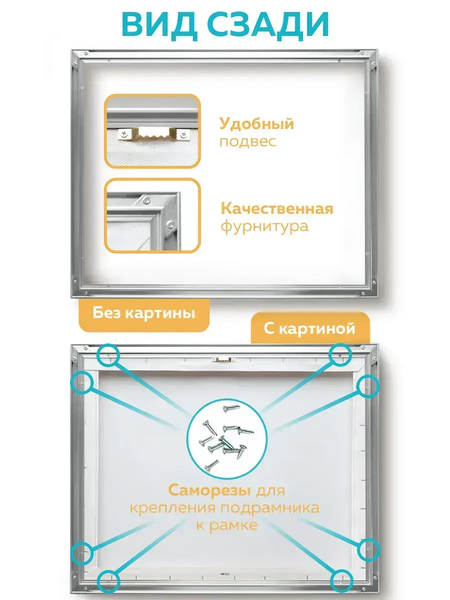 Металлическая багетная рама 50х60 см предназначена для картин на подрамнике. Размер 50х60 см — это размер подходящей вставки, а габариты самой рамки больше - 52х62 см. Подробный слайд со всеми размерами можно найти в фотографиях товара. Рама 50х60 см подойдет для картины на подрамнике, алмазной мозаики на подрамнике, картины по номерам на подрамнике. Глубина рамки 50х60 см - 20 мм. Если толщина вашей вставки - 20 мм, то вставка будет располагаться вровень с рамкой. Если толщина вашей вставки больше 20 мм - вставка будет выступать над рамкой. Если толщина вставки меньше 20 мм, то рамка будет выступать над вставкой. Благодаря уникальному конструктиву алюминиевой рамки 50х60 см, она красиво обрамляет холст, не утяжеляя его. Между подрамником и рамкой остается свободное пространство, что создает эффект «плавающей» картины. Картина на подрамнике крепится к металлической рамке 50х60 см саморезами, которые идут в комплекте с рамкой. Также в комплектацию рамки 50х60 см входит удобный подвес, двойные крепежные углы и отвертка. Подробный слайд с комплектацией можно найти в фотографиях карточки товара. Внимание! Рамка 50 на 60 см поставляется в прочном картонном тубусе в разобранном виде. Сборка рамки 50х60 см очень простая и не потребует много усилий. Благодаря своему стильному и минималистичному дизайну эта рама будет идеально вписываться в любой интерьер, будь то классический, современный или скандинавский стиль. Металлическая багетная рама 50х60 см от Designeroom не только украсит ваш дом, но и станет акцентом, подчеркивающим ваш вкус и стиль.