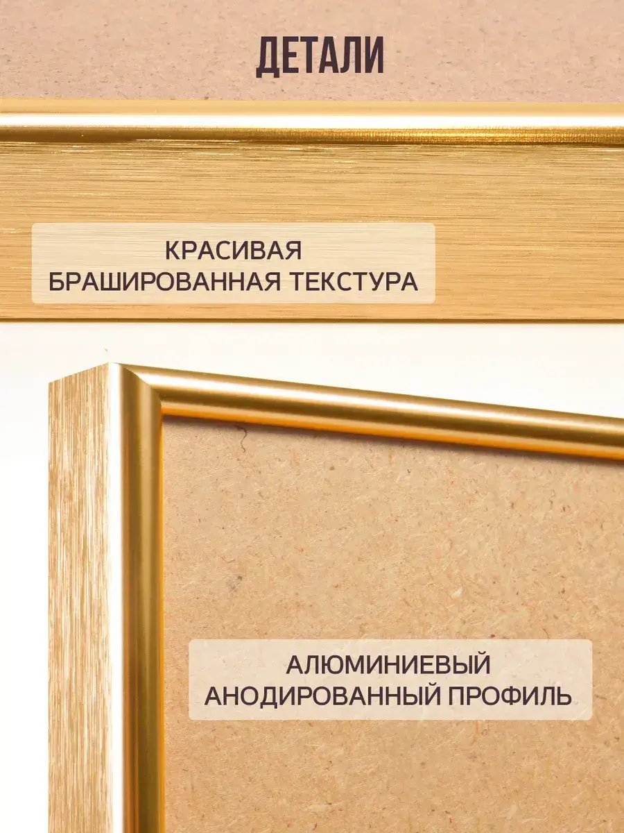 Брашированная алюминиевая рамка 33х48 см с быстрой сменой изображения. Достоинства фоторамки 33х48 см: крепкий стильный металлический каркас; прозрачная вставка из ПЭТ; небольшой вес. Основным преимуществом перед другими металлическими фоторамками 33 на 48 (типа Нельсон) является суперудобная и супербыстрая смена вложений: нужно просто сдвинуть прижимные пружины. В рамки 33 на 48 см можно вставить: постеры; фотографии; пазлы, алмазную мозаику, вышивку и т. д. Рамку для фото 33х48 см можно вешать и вертикально, и горизонтально. Металлические рамки 33х48 см изготовлены из анодированного алюминиевого профиля, укомплектованы жестким задником из оргалита 3 мм, защитным прозрачным пластиком ПЭТ 0,5 мм, металлическими пружинами/подвесами для фиксации вложения и размещения рамки на стене. Внимание! В рамке 33х48 см для постеров мы используем прозрачную вставку из ПЭТ толщиной 0,5 мм, а не стекло. Фоторамка 33х48 получается легкой и безопасной - её невозможно разбить даже намеренно. При этом эстетические свойства рамки 33 на 48 см не теряются: ПЭТ не искажает изображение и обеспечивает 100%-ю прозрачность. Внимание! Перед первым использованием рамки для картины 33х48 с пластиковой вставки необходимо снять защитную пленку с двух сторон! Внимание! Наши рамки 33 на 48 не предназначены для использования вне помещений.