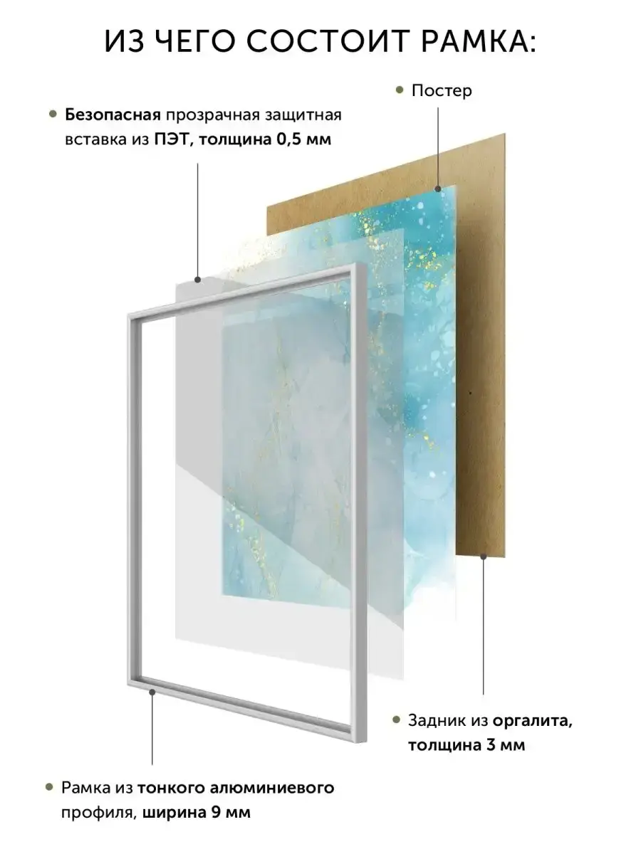 Металлическая фоторамка 61х86 см. Подходит для вложений размера 610х860 мм. Размер фоторамки 61х86 указан по размеру помещаемого вложения, а габаритные размеры рамки чуть больше: 614х864 мм (подробный слайд со всеми замерами находится в фотографиях). Рамка 61 на 86 подходит для постеров, фотографий, пазлов, алмазных мозаик и т. д. Вы можете вставить любое вложение, толщина которого не больше 5 мм. Рамка для фото 61х86 изготовлена из алюминиевого профиля, который обеспечивает прочность, коррозионную стойкость и долгий срок службы. В алюминиевой раме 61х86 используется прозрачный пластик ПЭТ, а не стекло. ПЭТ невозможно разбить, он безопасный, не искажает изображение и обеспечивает 100% прозрачность. Внимание! Снимите защитную пленку с 2 сторон со вставки из ПЭТ! Для жесткой фиксации изображения рамка для картины 610х860 комплектуется прижимными пружинами. Они очень плотно держат вставку, что позволяет использовать рамки 86х61 для пазлов, алмазных мозаик и т. д. Фоторамка 610х860 очень надежно упакована. Риски повреждения при транспортировке сведены к минимуму. Чтобы вставить вложение в рамку 86х61 Нельсон, необходимо открутить 2 винта. К каждой рамке 610х860 прилагается инструкция по использованию, а более подробная инструкция выложена в фотографиях товара. Итак, рамки для фото 61х86 см очень надежные и крепкие, несмотря на небольшой вес и тонкий изящный алюминиевый профиль. Рама 86х61 для постера стильная, универсальная, отлично смотрится и в домашних, и в офисных интерьерах. Рамки для картин 61 на 86 не подвержены коррозии; не боятся влаги и прямого солнечного света. Рамки 86 на 61 не подвержены деформации и устойчивы к механическим повреждениям, прослужат долго. Несомненное преимущество рамки 61х86 для картины – безопасная прозрачная вставка из ПЭТ. Рамку 61 на 86 можно красиво компоновать с другими размерами.