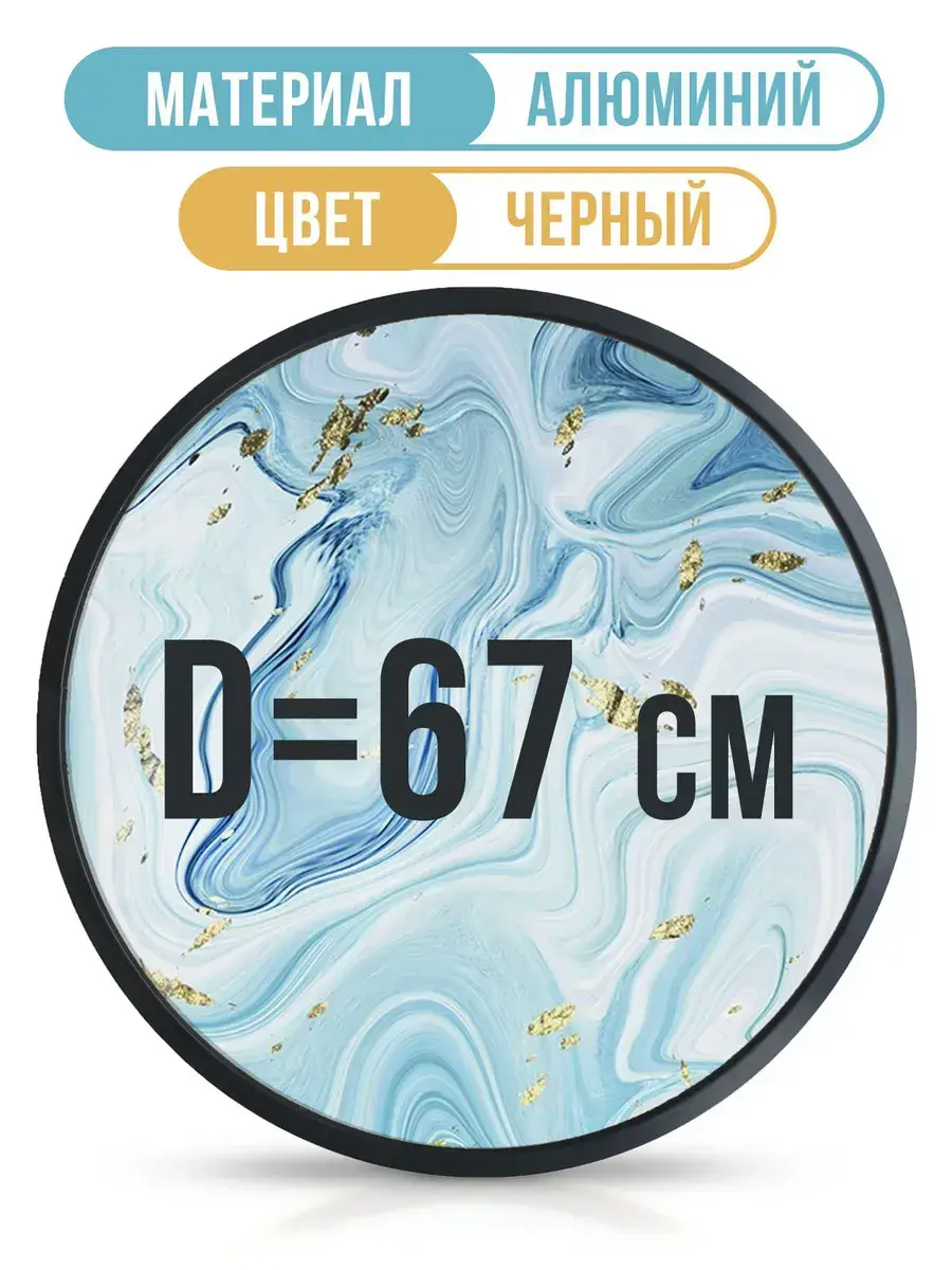 Круглая алюминиевая фоторамка 67 см. Габаритные размеры круглой металлической фоторамки - 678 мм. Диаметр видимой части - 660 мм. В круглую алюминиевую рамку 670 мм можно вставить постер, фото, алмазную мозаику, пазл, вышивку, зеркало, а также любую вставку, толщина которой не превышает 10 мм. Круглая металлическая рамка 67 см выполнена из легкого алюминия с красивой брашированной текстурой. В рамку для фото 67 см очень просто вставить изображение. Прижимные пружины вытаскиваются и вставляются без малейших усилий, но держат плотно и надежно. Подвес фоторамки также вставляется очень легко и свободно перемещается на любую точку окружности. Вместо стекла мы используем прозрачный пластик ПЭТ. Фоторамка 67 см получается легкой и безопасной - её невозможно разбить даже намеренно. При этом эстетические свойства круглой металлической рамки для вышивки не теряются: ПЭТ не искажает изображение и обеспечивает абсолютную прозрачность. Не забудьте снять защитную пленку с прозрачной вставки с ДВУХ сторон! Произведено в России.
