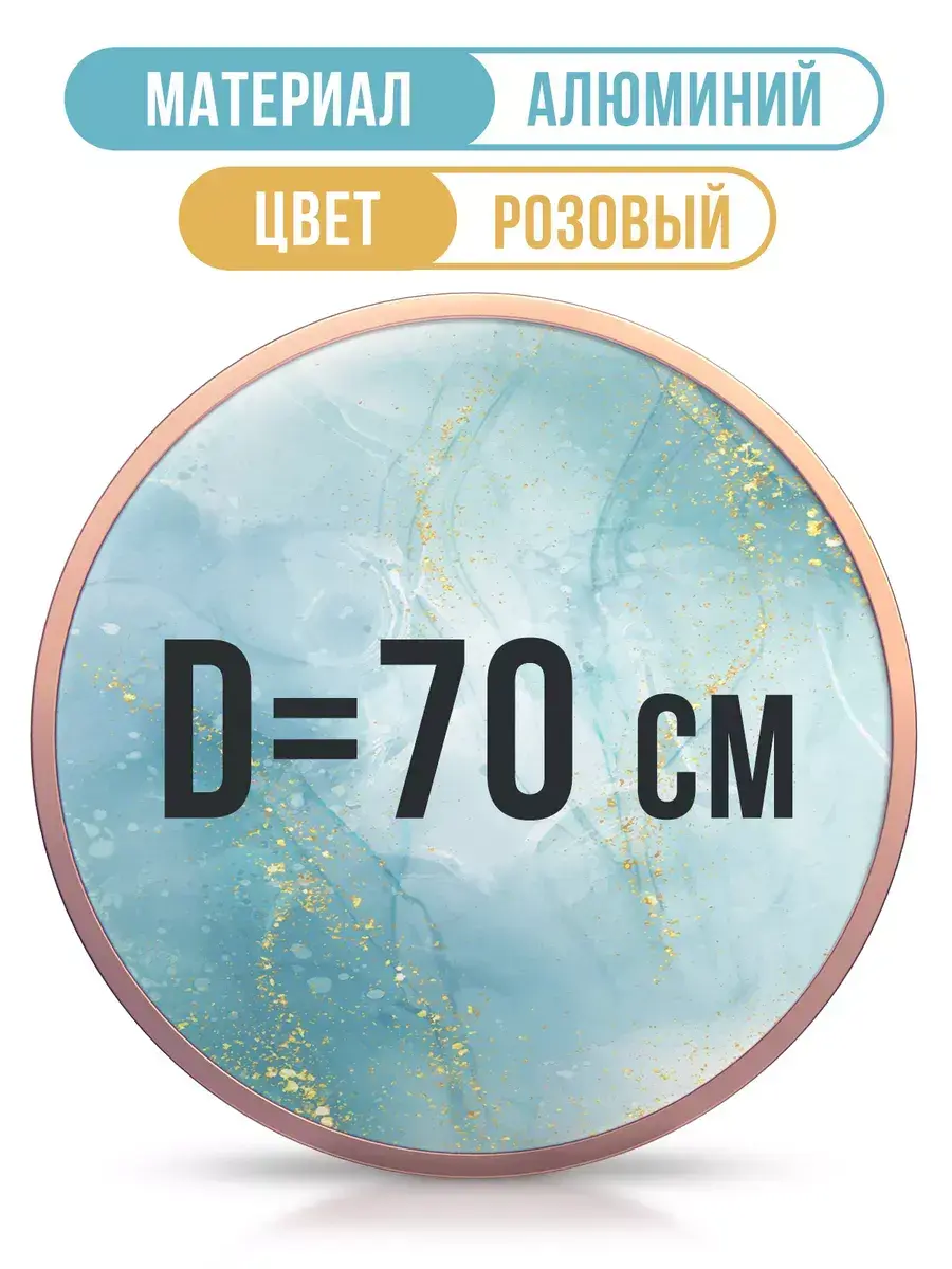 Круглая алюминиевая фоторамка 70 см. Габаритные размеры круглой металлической фоторамки - 708 мм. Диаметр видимой части вставки - 690 мм. В круглую алюминиевую рамку 700 мм можно вставить постер, фото, алмазную мозаику, пазл, вышивку, зеркало, а также любую вставку, толщина которой не превышает 10 мм. Круглая металлическая рамка 70 см выполнена из легкого алюминия с красивой брашированной текстурой. В рамку для фото 70 см очень просто вставить изображение. Прижимные пружины вытаскиваются и вставляются без малейших усилий, но держат плотно и надежно. Подвес фоторамки также вставляется очень легко и свободно перемещается на любую точку окружности. Вместо стекла мы используем прозрачный пластик ПЭТ. Фоторамка 70 см получается легкой и безопасной - её невозможно разбить даже намеренно. При этом эстетические свойства круглой металлической рамки не теряются: ПЭТ не искажает изображение и обеспечивает абсолютную прозрачность. Не забудьте снять защитную пленку с прозрачной вставки с ДВУХ сторон! Произведено в России.