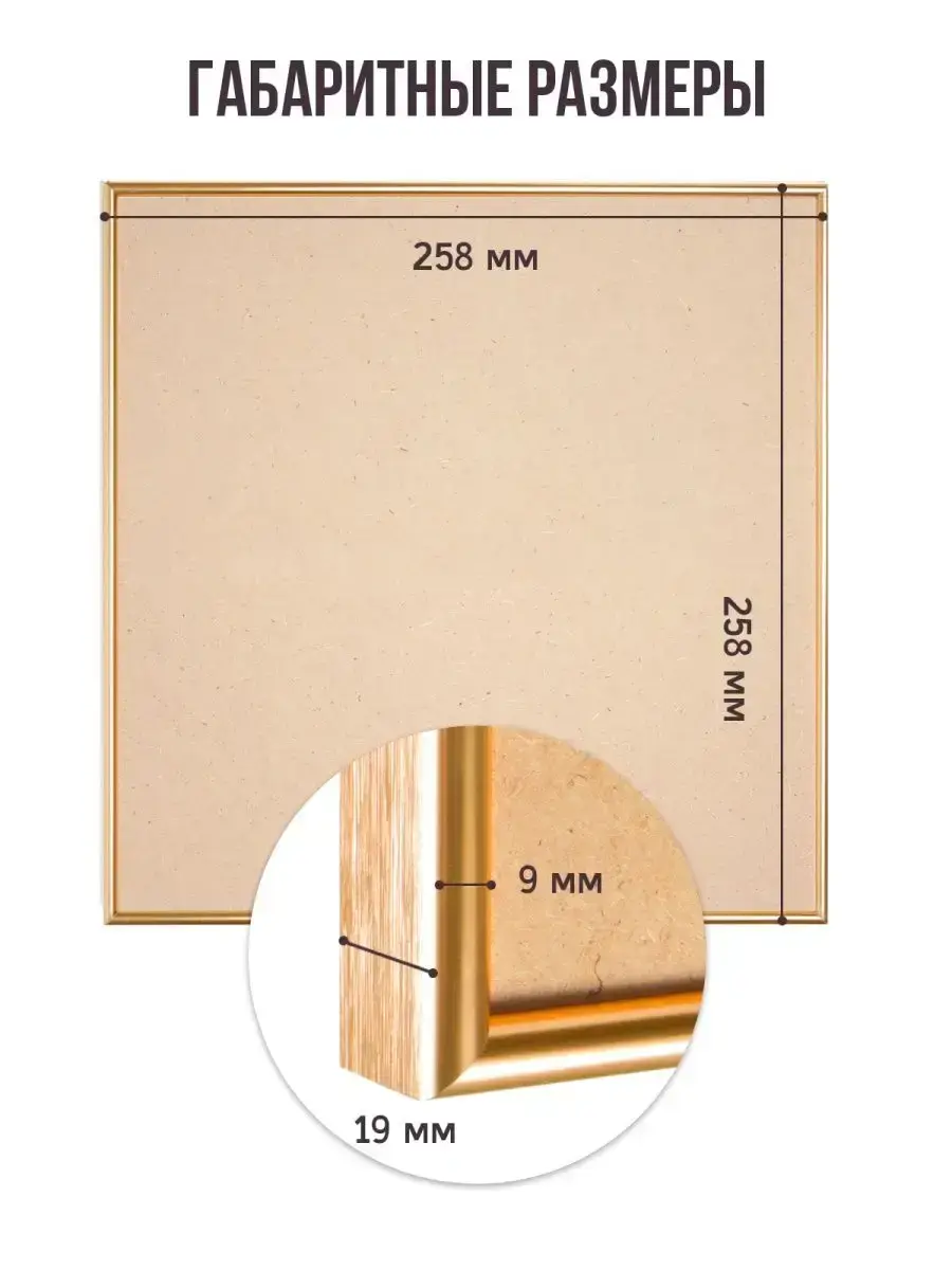 Брашированная алюминиевая рамка 25х25 см с быстрой сменой изображения. Достоинства фоторамки 25х25 см: крепкий стильный металлический каркас; прозрачная вставка из ПЭТ; небольшой вес. Основным преимуществом перед другими металлическими фоторамками 25 на 25 (типа Нельсон) является суперудобная и супербыстрая смена вложений: нужно просто сдвинуть прижимные пружины. В рамки 25 на 25 см можно вставить: постеры; фотографии; пазлы, алмазную мозаику, вышивку и т. д. Рамку для фото 25х25 см можно вешать и вертикально, и горизонтально. Металлические рамки 25х25 см изготовлены из анодированного алюминиевого профиля, укомплектованы жестким задником из оргалита 3 мм, защитным прозрачным пластиком ПЭТ 0,5 мм, металлическими пружинами/подвесами для фиксации вложения и размещения рамки на стене. Внимание! В рамке 25х25 см для постеров мы используем прозрачную вставку из ПЭТ толщиной 0,5 мм, а не стекло. Фоторамка 25х25 получается легкой и безопасной - её невозможно разбить даже намеренно. При этом эстетические свойства рамки 25 на 25 см не теряются: ПЭТ не искажает изображение и обеспечивает 100%-ю прозрачность. Внимание! Перед первым использованием рамки для картины 25х25 с пластиковой вставки необходимо снять защитную пленку с двух сторон! Внимание! Наши рамки 25 на 25 не предназначены для использования вне помещений.