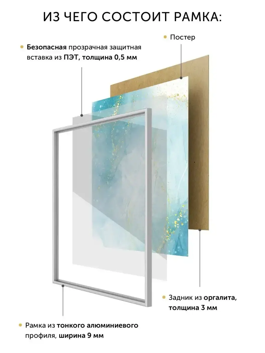 Алюминиевая рамка 35х35 см. Размеры фоторамки 35х35 указаны по размеру помещаемого вложения, а габаритные размеры рамки чуть больше: 354х354 мм (подробный слайд со всеми замерами находится в фотографиях). Квадратная рамка 35х35 подходят для постеров, фотографий, пазлов, алмазных мозаик и т. д. Вы можете вставить любое вложение, толщина которого не больше 5 мм. Рамка квадратная 35х35 изготовлена из алюминиевого профиля, который обеспечивает прочность, коррозионную стойкость и долгий срок службы. В алюминиевой рамке 35 на 35 используется прозрачный пластик ПЭТ, а не стекло. ПЭТ невозможно разбить, он безопасный, не искажает изображение и обеспечивает 35% прозрачность. Внимание! Снимите защитную пленку с 2 сторон со вставки из ПЭТ! Для жесткой фиксации изображения рама 35х35 комплектуется прижимными пружинами. Они очень плотно держат вставку, что позволяет использовать рамки 35 на 35 для пазлов, алмазных мозаик и т. д. Фоторамка 35х35 очень надежно упакована. Риски повреждения при транспортировке сведены к минимуму. Чтобы вставить вложение в раму для картины 35х35, необходимо открутить 2 винта. К каждой рамке 35 на 35 прилагается инструкция по использованию, а более подробная инструкция выложена в фотографиях товара. Итак, рамка для фото квадратная 35х35 см очень надежная и крепкая, несмотря на небольшой вес и тонкий изящный алюминиевый профиль. Рамка для фото 35х35 стильная, универсальная, отлично смотрится и в домашних, и в офисных интерьерах. Рамки 35 на 35 не подвержены коррозии; не боятся влаги и прямого солнечного света. Рамки 35х35 не подвержены деформации и устойчивы к механическим повреждениям, прослужат долго. Несомненное преимущество рамки 35х35 для картины – безопасная прозрачная вставка из ПЭТ. Рамку квадратную можно красиво компоновать с другими размерами.