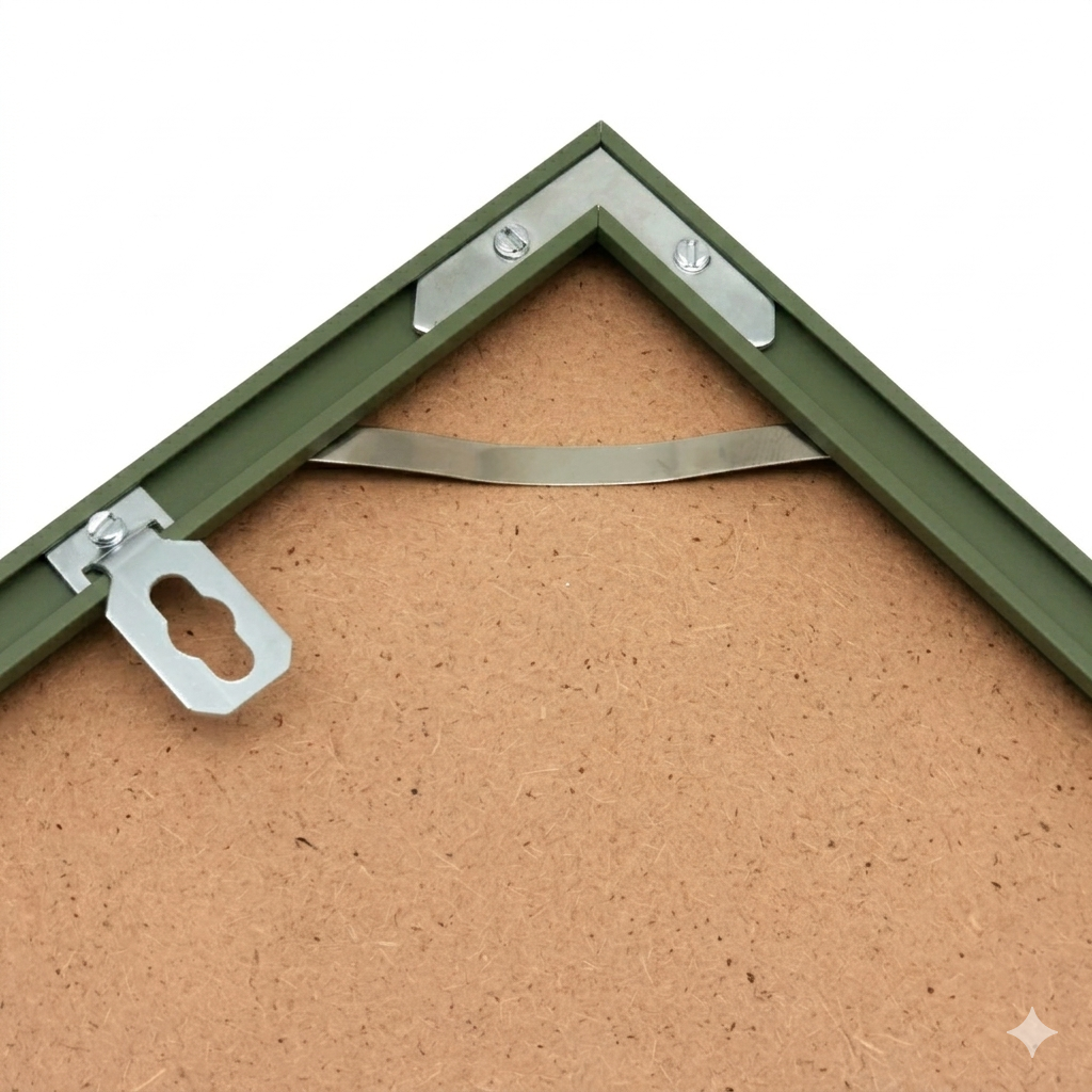 Чтобы рамка подошла идеально, ориентируйтесь на размер вашего вложения. Оно должно быть 600х800 мм. Внешние габариты рамки: 604х804 мм (за счет толщины профиля).