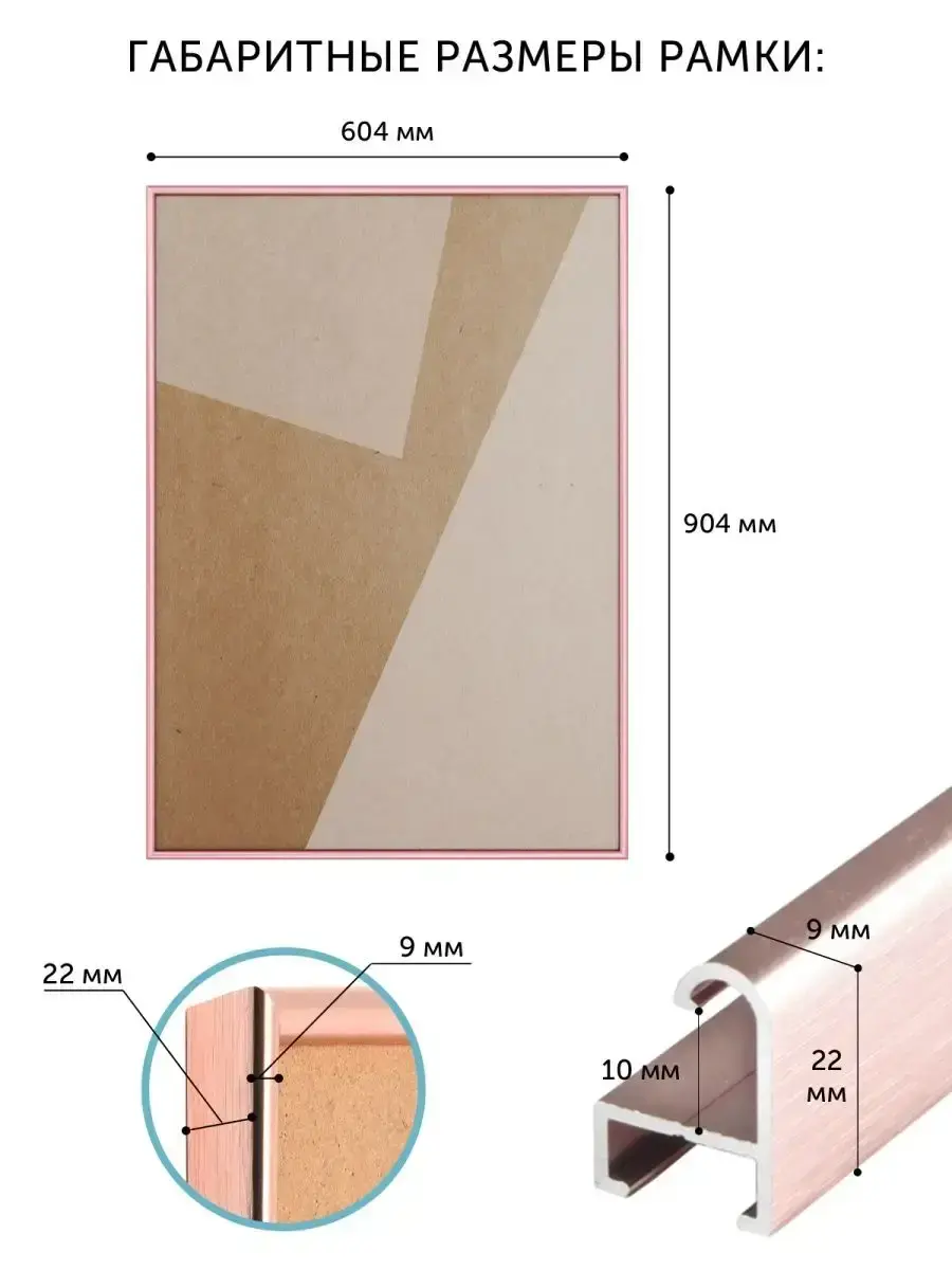 Алюминиевая рамка 60х90 см. Размеры фоторамки 60х90 указаны по размеру помещаемого вложения, а габаритные размеры рамки чуть больше: 604х904 мм (подробный слайд со всеми замерами находится в фотографиях). Рамка 90х60 подходят для постеров, фотографий, пазлов, алмазных мозаик и т. д. Вы можете вставить любое вложение, толщина которого не больше 5 мм. Рамка для постера 60х90 изготовлена из алюминиевого профиля, который обеспечивает прочность, коррозионную стойкость и долгий срок службы. В алюминиевой рамке 60 на 90 используется прозрачный пластик ПЭТ, а не стекло. ПЭТ невозможно разбить, он безопасный, не искажает изображение и обеспечивает 100% прозрачность. Внимание! Снимите защитную пленку с 2 сторон со вставки из ПЭТ! Для жесткой фиксации изображения рама 60х90 комплектуется прижимными пружинами. Они очень плотно держат вставку, что позволяет использовать рамки 60 на 90 для пазлов, алмазных мозаик и т. д. Фоторамка 60х90 очень надежно упакована. Риски повреждения при транспортировке сведены к минимуму. Чтобы вставить вложение в раму для картины 60х90, необходимо открутить 2 винта. К каждой рамке 60 на 90 прилагается инструкция по использованию, а более подробная инструкция выложена в фотографиях товара. Итак, рамки 60х90 см очень надежные и крепкие, несмотря на небольшой вес и тонкий изящный алюминиевый профиль. Рамка для фото 60х90 стильная, универсальная, отлично смотрится и в домашних, и в офисных интерьерах. Рамки 60 на 90 не подвержены коррозии; не боятся влаги и прямого солнечного света. Рамки 90х60 не подвержены деформации и устойчивы к механическим повреждениям, прослужат долго. Несомненное преимущество рамки 60х90 для картины – безопасная прозрачная вставка из ПЭТ. Рамку 60х90 можно красиво компоновать с другими размерами.