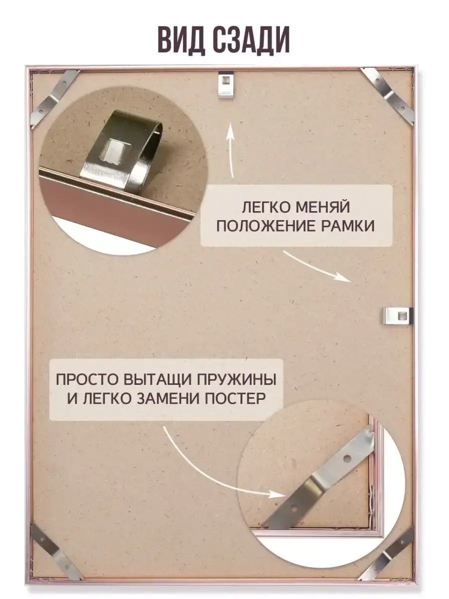Набор 2-х брашированных алюминиевых рамок А4 (210х300 мм) с быстрой сменой изображения. Наши рамки формата А4 подойдут как для вложений 210х300 мм, так и для вложений 210х297 мм. Достоинства фоторамки А4: крепкий стильный металлический каркас; прозрачная вставка из ПЭТ; небольшой вес. Основным преимуществом перед другими металлическими фоторамками А4 (типа Нельсон) является суперудобная и супербыстрая смена вложений: нужно просто сдвинуть прижимные пружины. В рамки формата А4 можно вставить: постеры; фотографии; пазлы, алмазную мозаику, вышивку и т. д. Рамку для фото А4 можно вешать и вертикально, и горизонтально. Металлические рамки А4 изготовлены из анодированного алюминиевого профиля, укомплектованы жестким задником из оргалита 3 мм, защитным прозрачным пластиком ПЭТ 0,5 мм, металлическими пружинами/подвесами для фиксации вложения и размещения рамки на стене. Внимание! В рамке А4 для постеров мы используем прозрачную вставку из ПЭТ толщиной 0,5 мм, а не стекло. Фоторамка А4 получается легкой и безопасной - её невозможно разбить даже намеренно. При этом эстетические свойства рамки 21х30 см не теряются: ПЭТ не искажает изображение и обеспечивает 100%-ю прозрачность. Внимание! Перед первым использованием рамки для картины А4 с пластиковой вставки необходимо снять защитную пленку с двух сторон! Внимание! Наши рамки формата А4 не предназначены для использования вне помещений.